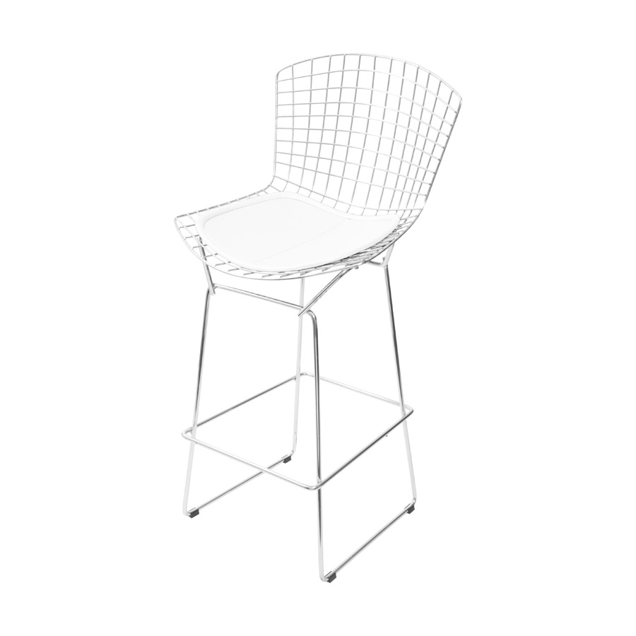 BANQUETA BERTOIA CROMADA COM ALMOFADA BRANCA