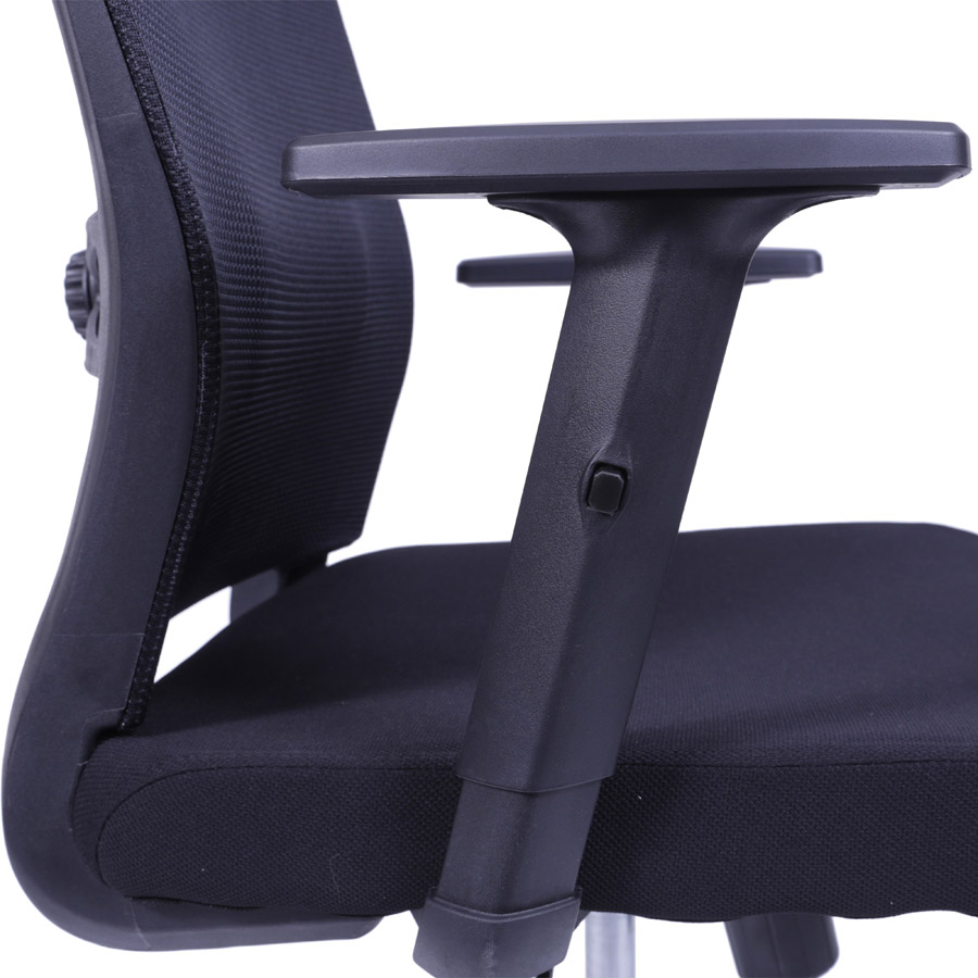 Assento e encosto em tela mesh, estrutura em Nylon, rodas em PU que não riscam o piso, ajuste de braços, ajustes de lombar, apoio de cabeça ajustável, sistema relax com travamento