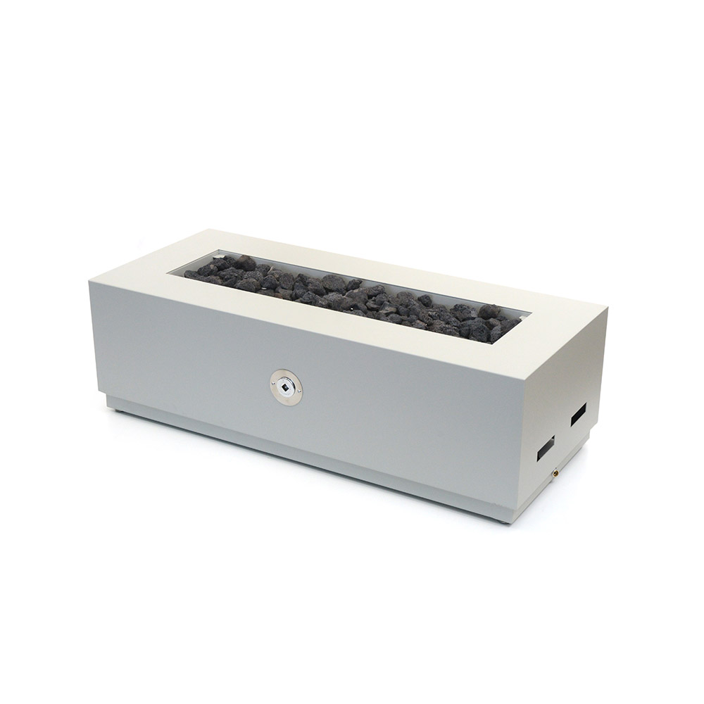 Base em Chapa Metálica e queimador linear em Aço inoxidável AISI 304. Equipamento para instalação somente em área externa.